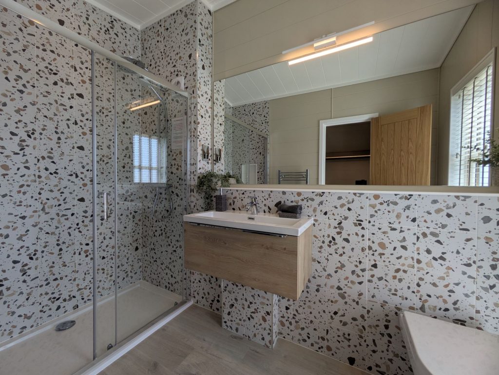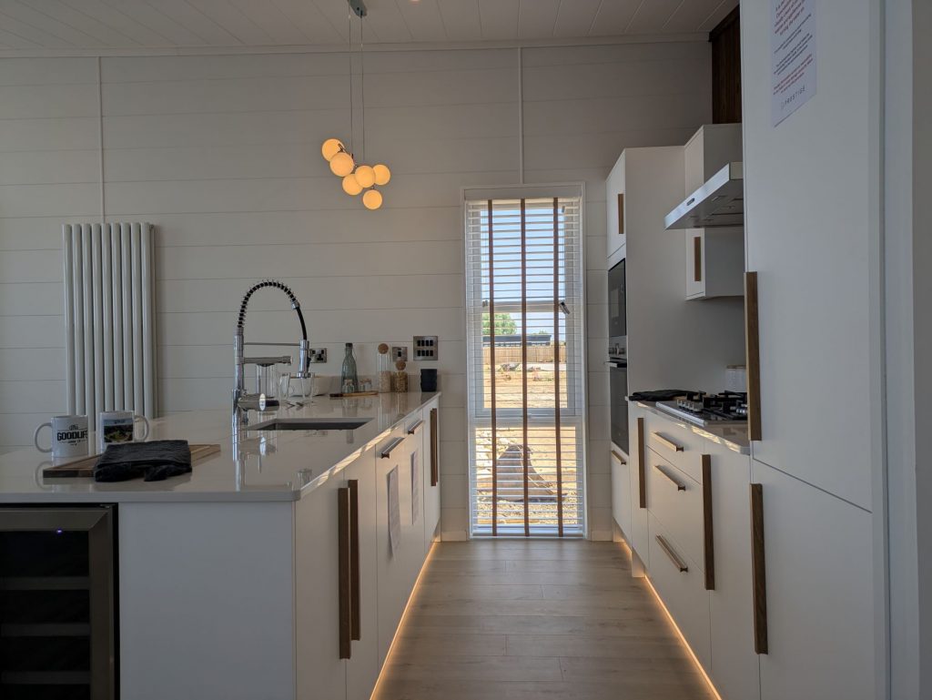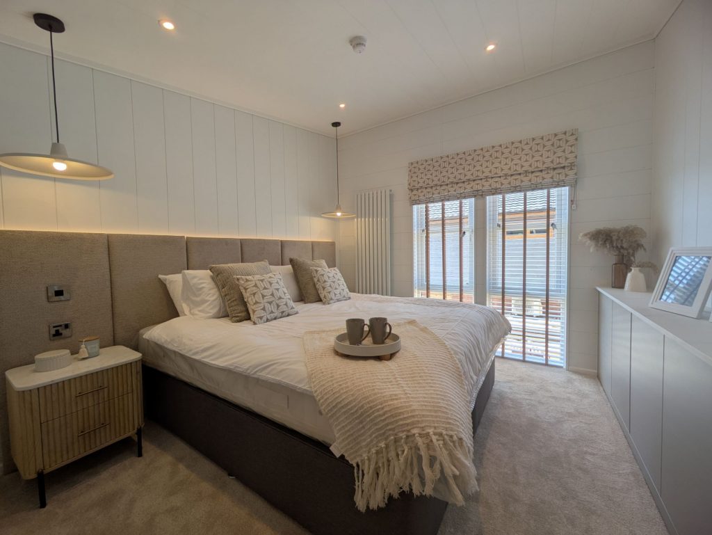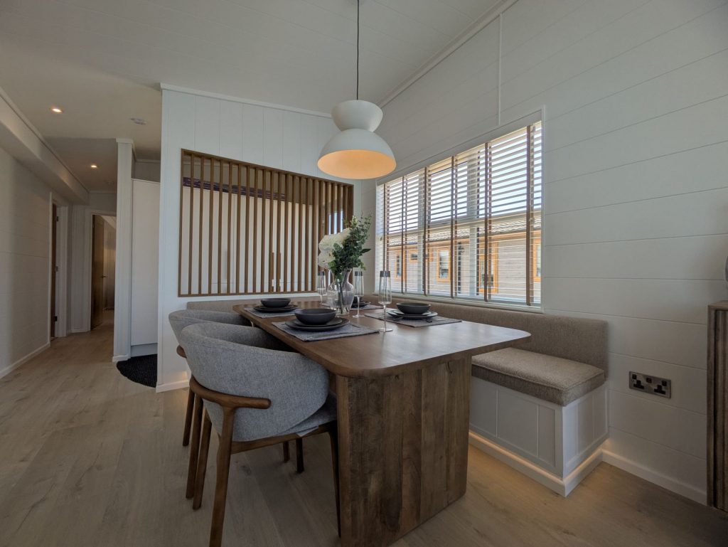 Externally the principal feature of the Aura is the stunning ‘Butterfly Roof’ which really makes the home stand out. The extensive timber decking makes the most of the stunning lake views, while an onsite shed provides excellent storage. You will even have a garden area and two parking spaces.